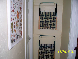 In the hall by the kids bathroom…too cute hanging the chairs up like that!