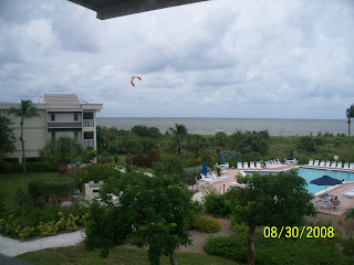 The view from the terrace overlooks the pool…out farther you can see a guy Kite Surfing in the Gulf (yep, I said the gulf…the same gulf that Hurricane Gustav was in).
