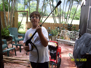 Bailey (our youngest) wanted to do some extra chores to make a little extra cash and one of the chores was pressure cleaning…not having safety goggles didn’t stop him.