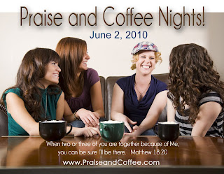 If you don’t have a Praise & Coffee Night in your area, then why don’t you take some time to pray about getting one started…maybe YOU are the perfect person to make it happen…all you need is a willing heart.