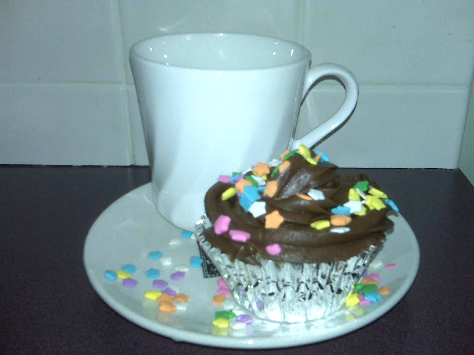 My cupcake was actually a group project!  I have been out of town this past week at my dear friend and ministry partner’s house, Sue Cramer from Praise and Coffee.  I told her about the challenge, hey wait…I think she laughed too, then we proceeded to work on this together.  She did all the mixing and baking and I did all the decorating and staging.