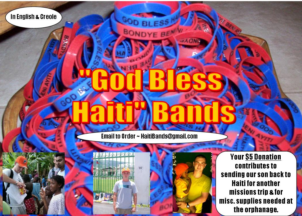 He’s trying to get back to Haiti this January and if you’d like to help sponsor him for a $5 donation he’ll send you one of these incredible “God Bless Haiti” bands. One side is in English and the other side is in Creole “Bondye Beni Ayiti” (don’t even ask me to say it because I can’t, lol).